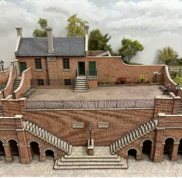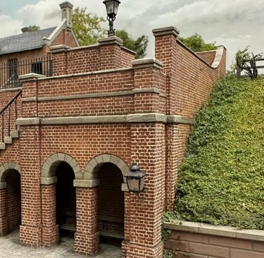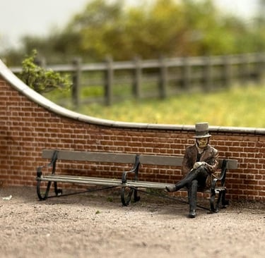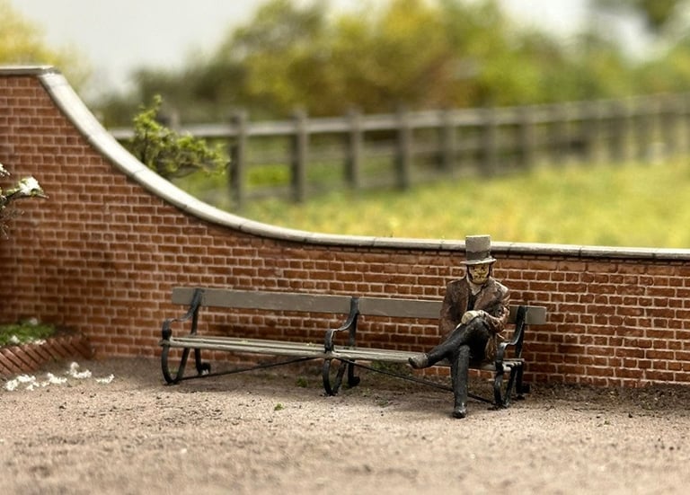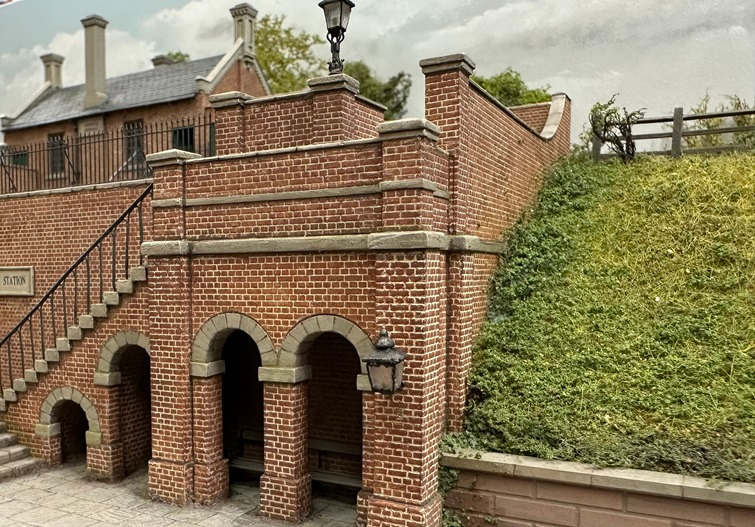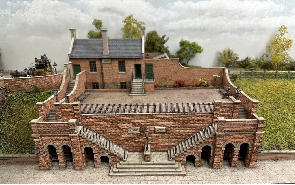 With a few more waiting passengers and ballasted track this area will be ready for some final photography. The scratchbuilt station lamps are wired up too and give a dull oily glow rather than the super bright cold LED glare usually found with proprietary model lamps. At least I can rest assured that the forecourt and steps are safely fitted to the layout rather than sharing the window sill with all sorts of other bits (or ‘work in progress’ as I prefer to think of it).